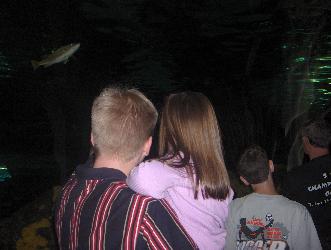 [hi] [low] October 13, 2005 Pictures from Ripley's Aquarium of the Smokies in Gatlinburg, TN. They have a very long tunnel where you walk under a tank in the aquarium holding hundreds (thousands?) of fish, including several sharks. There's a kids area where they get to touch horseshoe crabs as well as stand up inside a donut-shaped fish tank. (28 pictures)